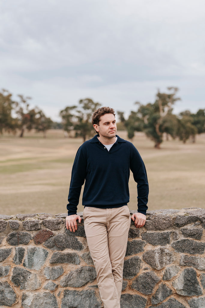 Whether layered over a crisp dress shirt for a polished office look or paired with chinos on a weekend getaway, this long-sleeve Merino polo transitions effortlessly. Its clean silhouette and minimal design put the spotlight on luxury knitwear, Merino refinement, and premium menswear detail.