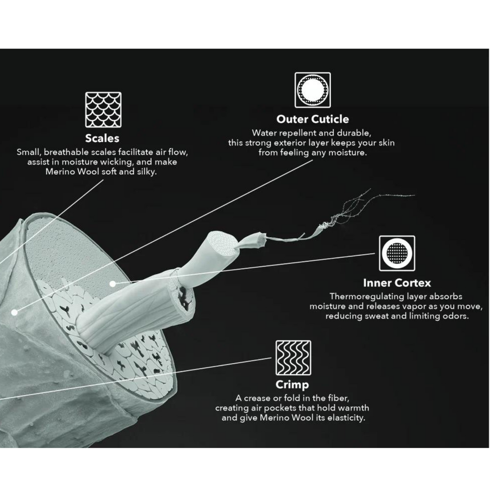 Merino sheep were originally bred to survive and thrive in extreme climates. Over generations, careful selection created a unique fleece: fine, soft, and breathable. Today, Merino wool remains the gold standard in natural performance fibres.